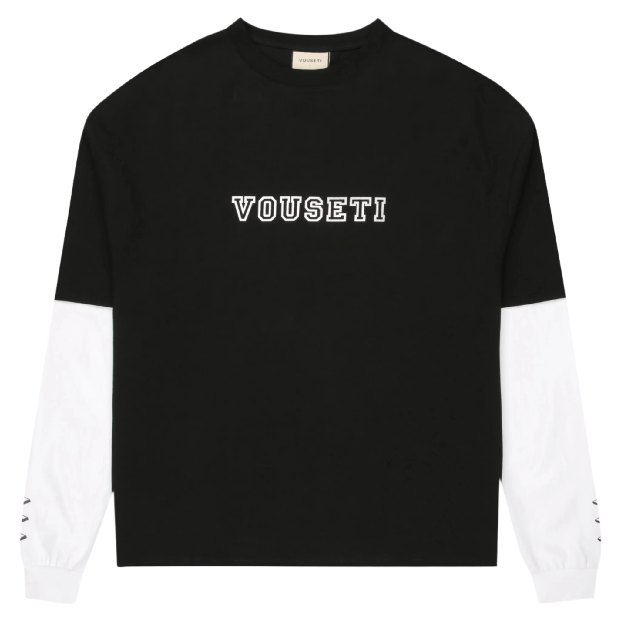 The VOUSETI Blackout Longsleeve is a must-have for colder days. Made from heavy weight cotton jersey, this tee combines style and warmth. Featuring a college-style font design screenprinted on the front and our signature back-to-back arrows on each sleeve, this tee is the perfect addition to your wardrobe.