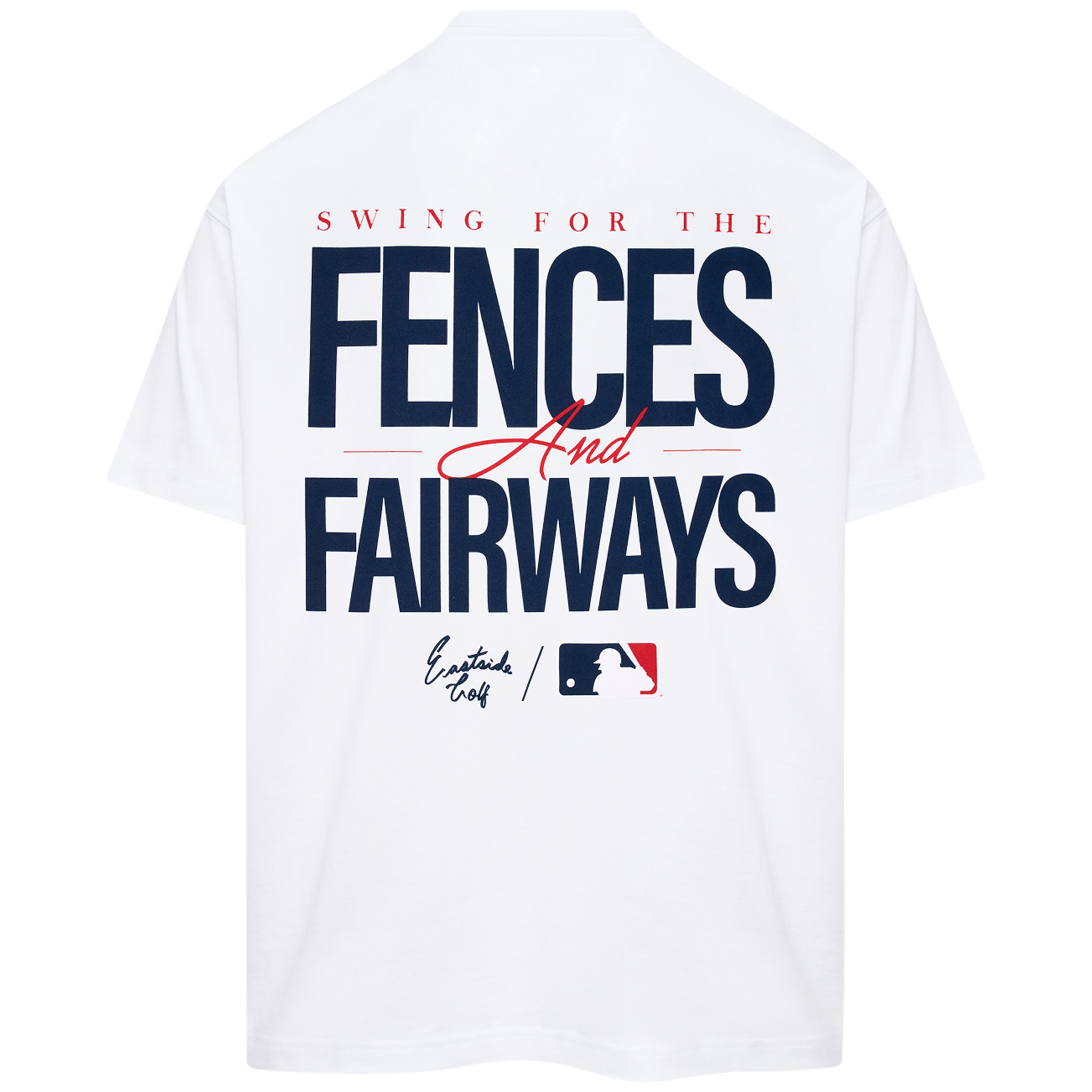 Push the boundaries. Built for those who break molds and chase greatness, the "Fences and Fairways" tee is a bold expression of Eastside Golf’s collaboration with Major League Baseball. The front features a custom co-branded patch with the iconic Swingman silhouette, while the back delivers the statement loud and clear: Swing for the Fences and Fairways. Crafted from heavyweight cotton, this tee bridges two worlds—honoring the power of baseball and the precision of golf. It’s a symbol of excellence wherever the game takes you.