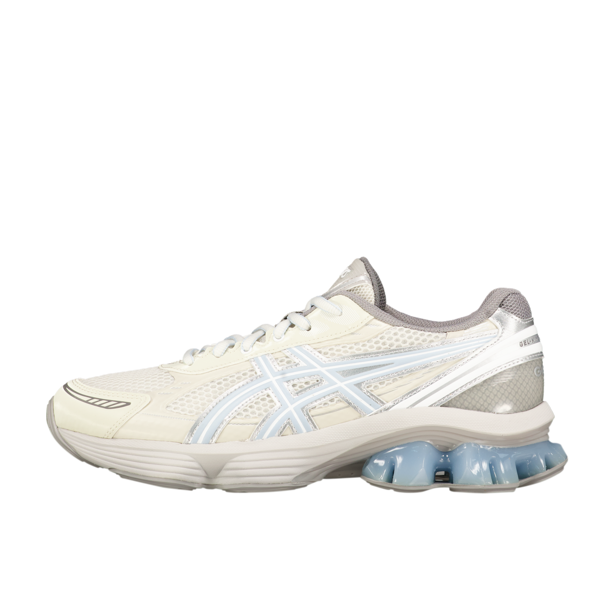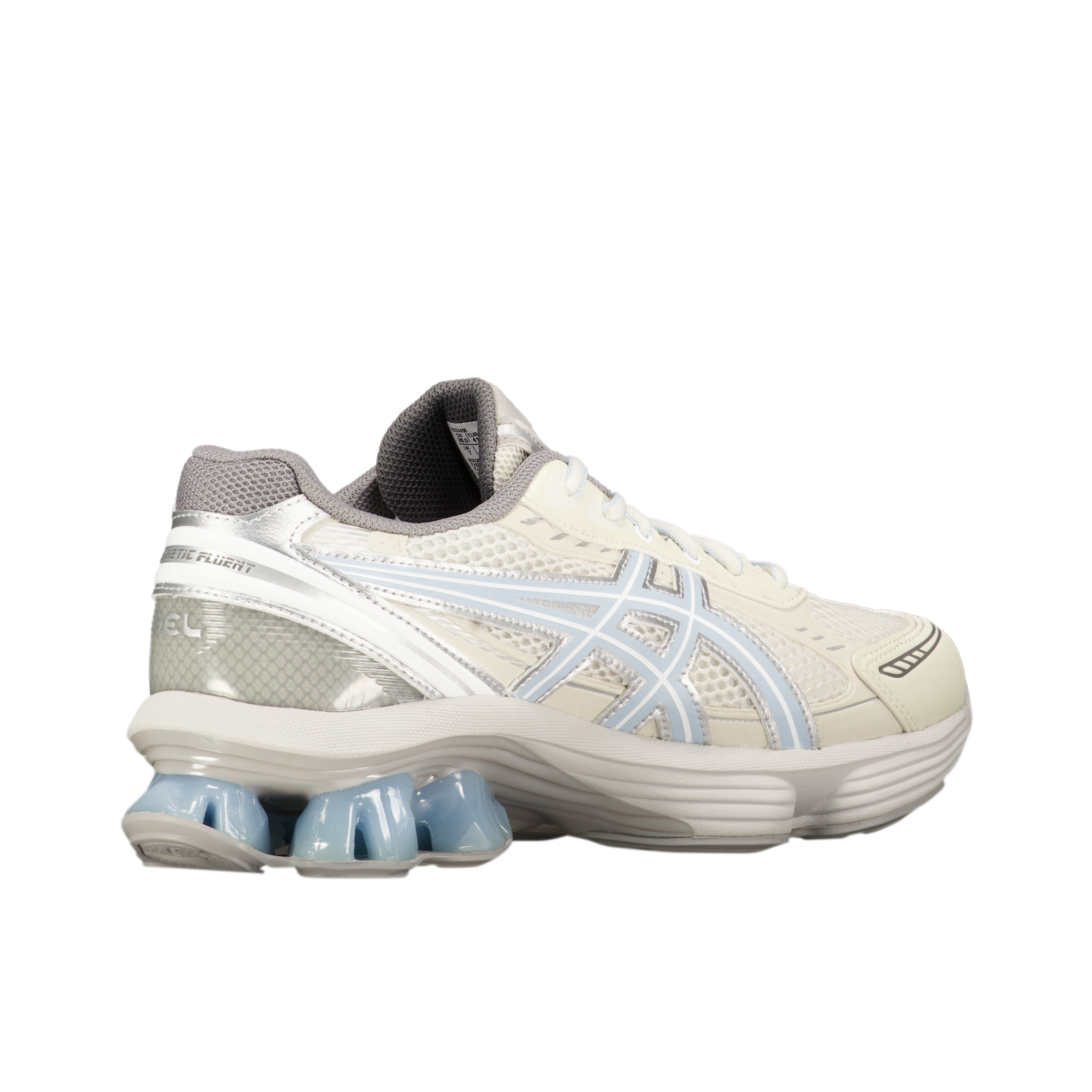 The Emmi X Gel-Kinetic Fluent sneaker blends a sophisticated white and ivory palette with subtle metallic accents and...