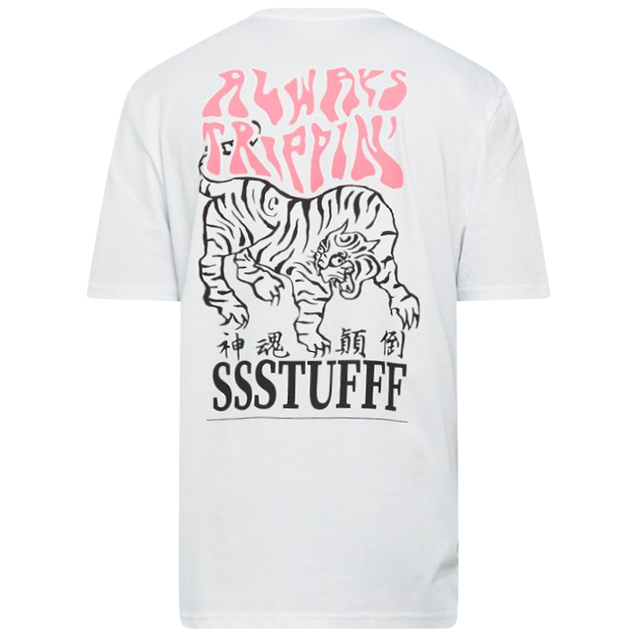 The tiger print on the back and chest and the outline of the ¨Always Trippin´¨ print on the back will show Yellow und...