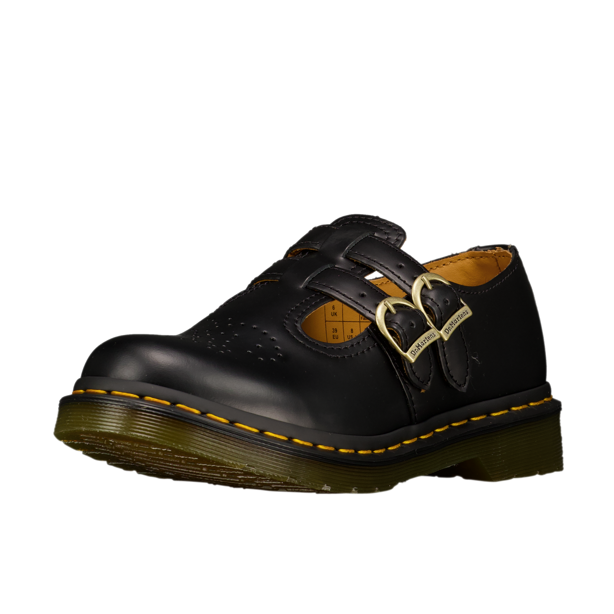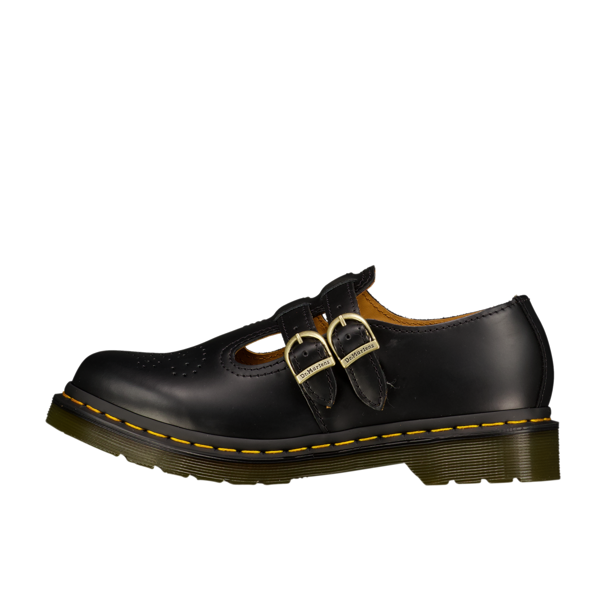 Gentler feel – same subversive design. The Polley Mary Jane shoe is revisited with comfort-forward thinking. Built with soft Ambassador leather, the T-bar structure with an adjustable buckle and recognisable yellow welt stitching stay true to the original Polley design. The shoe is sealed with a smoke grey DMS outsole.