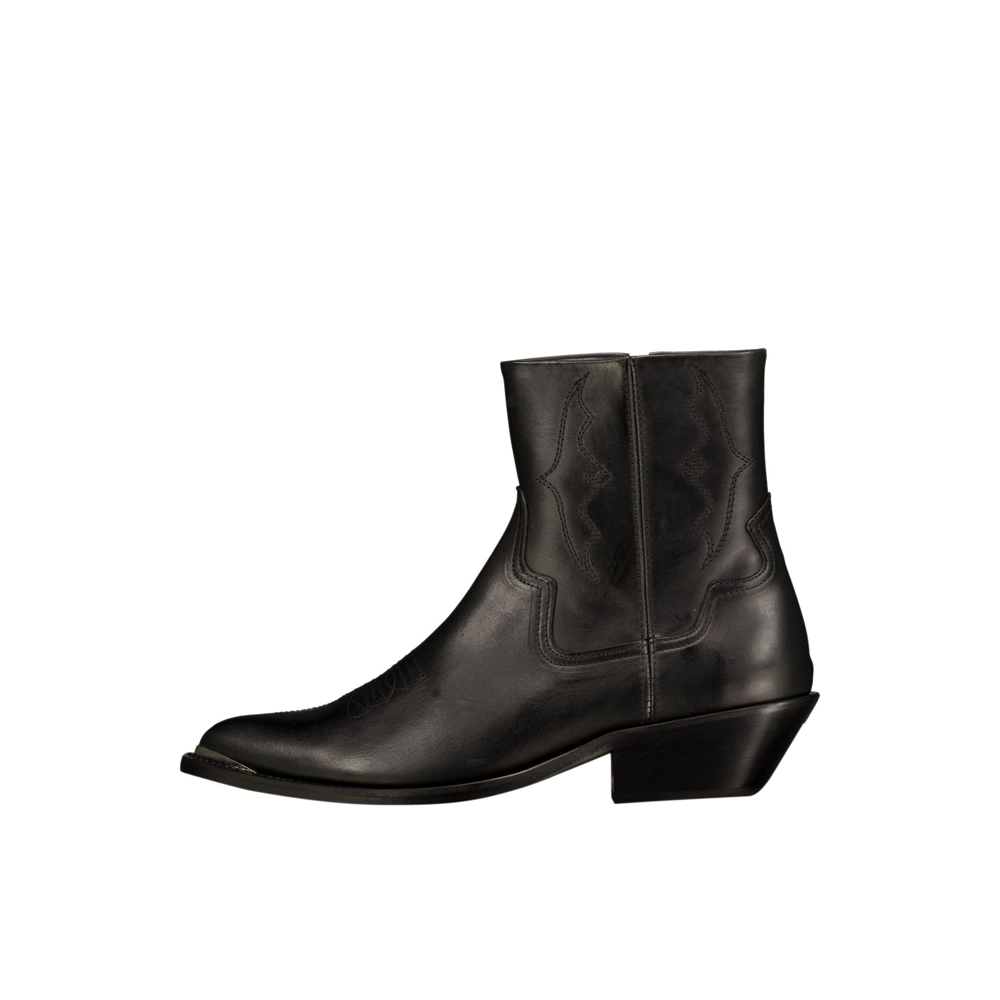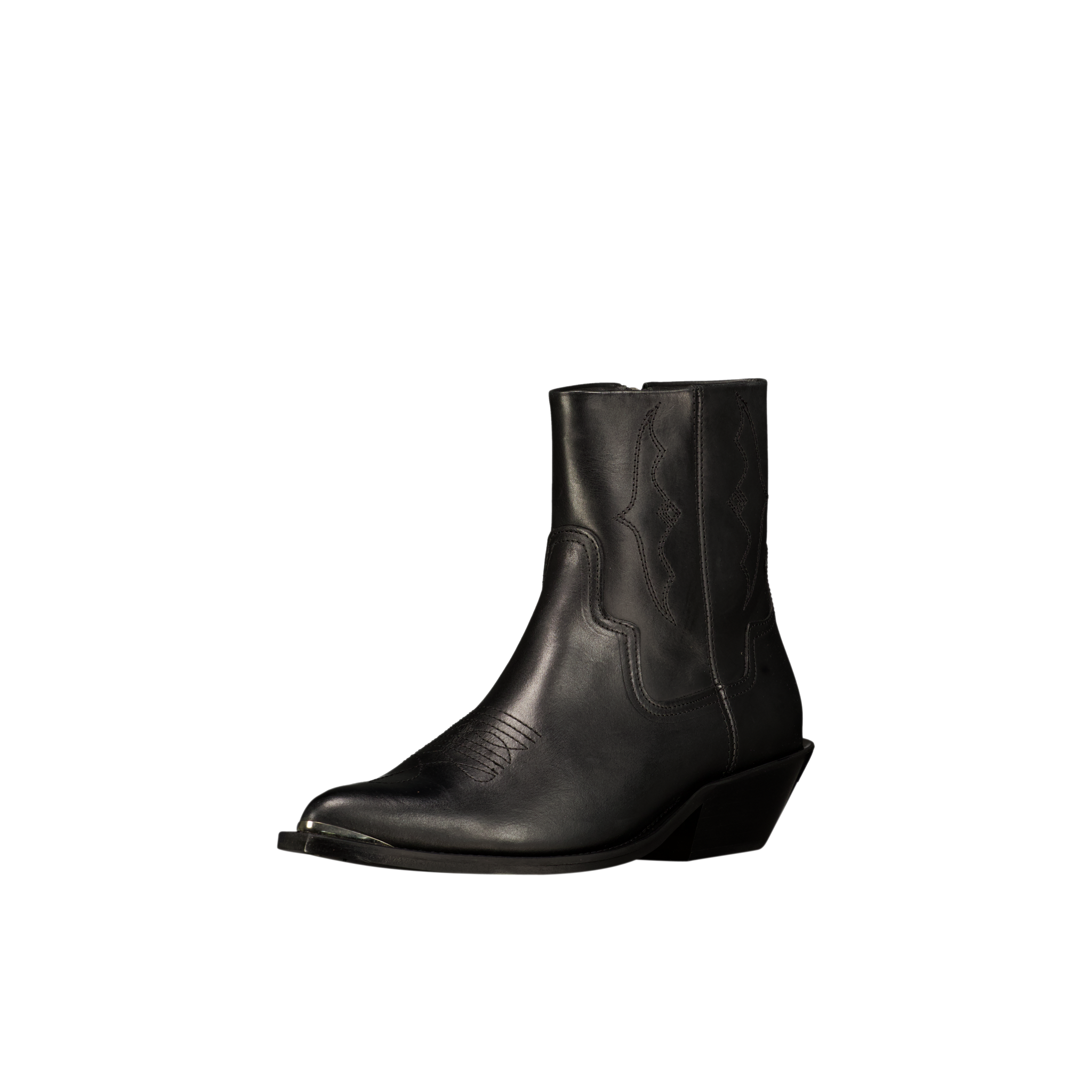 Introducing the Michael Zip Boot Leather in Black, a refined western-inspired ankle boot crafted from premium smooth leather with a clean, sculpted profile. Designed to balance sharp styling with everyday wearability, this silhouette delivers a modern take on classic western footwear.